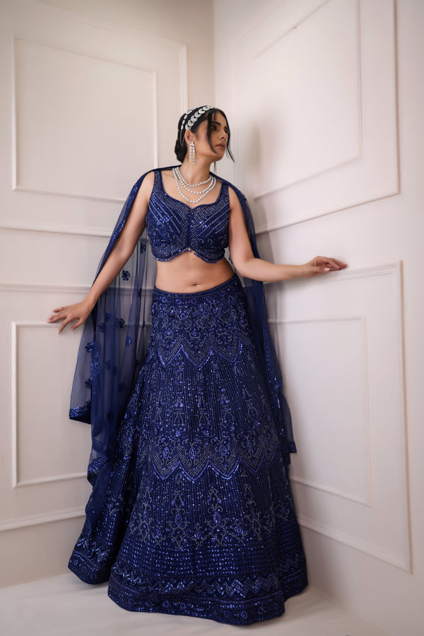 Lehengas come in standard sizes from XS to XXXL.