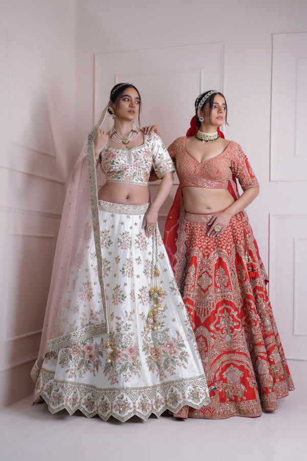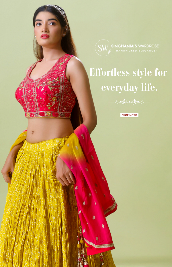 You can easily book a video call with Singhania's Wardrobe, where our team will help you pick and choose your lehenga.