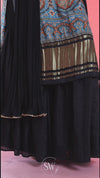 Cool Black Printed Straight Suit Set With Hand Embroidery