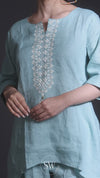 This Cool Blue Co-Ord Set set features a top with floral embroidery and a matching pair of pants. The top is features a relaxed fit, while the pants have a staright fit for a comfortable and stylish look. This ensemble is perfect for a day at the beach or a casual lunch with friends.