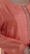 Creamy Peach Straight Suit Set With Hand Embroidery