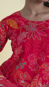 Sophisticated Imperial Red Printed Straight Suit Set for festive and casual occassions The luxurious fabric and intricate thread embroidery with huge floral prints define refined elegance. The floral details embroidered and printed dupatta lend polish.