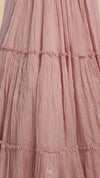 A Pastel Peach Long Gown, lavishly embellished with intricate embroidery in sequins, and beadwork. Perfect for making a grand entrance at formal events. The voluminous skirt, flared modern sleeves and opulent accents ensure making heads turn.