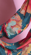 Trendy Peacock Blue Gown - a perfect piece for party wear. The V-neck gown has minimal embroidery but abundant floral print patterns all over. The lively, bright colours add an elegant touch to the overall look.