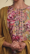 This straight suit set in Ochre Yellow has abundant floral prints all over for understated elegance. It can be styled for both workwear and eveningwear with effortless grace. The flattering silhouette, dual shade dupatta and delicate details make it suitable for formal events, celebrations, and day wear.