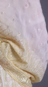 An elegant Pastel Yellow Bridal Lehenga Set decorated with delicate floral designs in thread work and sequins. The 3/4 sleeves blouse and flowy lehenga are accentuated with resham work and sitara. Complete the modern bridal look with the sheer dupatta.