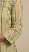 A relaxed fit Pale Green Printed Kurti in a vibrant stripes print and minimal embroidery, ideal for casual and formal wear. The minimal colours and comfy silhouette make it perfect for everyday use. The lively print patterns, accentuated with flared sleeves, adds a vibe.