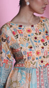 Light Cream Printed Kurti perfect for festive and family events. The colour adds richness while the floral print in different designs all over elevates the look. The kurta is balanced minimal embroidery work.