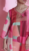 Trendy Pink Multicolour Top with palazzo pants - a perfect set for office and casual daywear. The V-neck kurta has minimal embroidery but abundant geometrical patterns all over. The lively, bright colours add an elegant touch to the overall look.