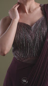 Wine Maroon Draped Saree with Embellished Blouse